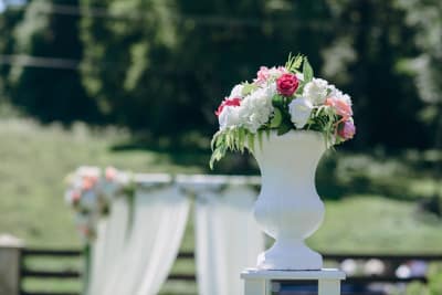 Une fois que le bouquet est terminé, il est déposé au centre de l’espace de la cérémonie. Il suivra ensuite les mariés pendant la fête du mariage et ils l’emmèneront avec eux une fois les festivités terminées.
