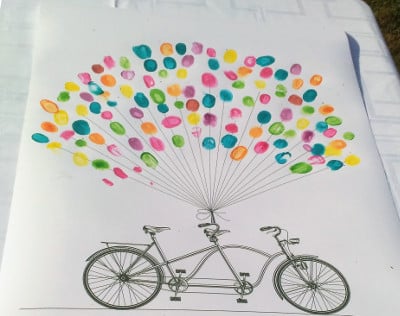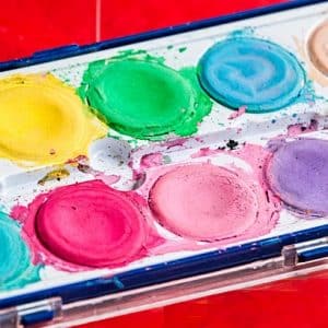 Avec juste un peu d’eau, les palettes d’aquarelle pour enfants sont parfaites pour ce rituel. Prévoyez également de quoi se nettoyer les mains après avoir déposé son empreinte. Cela évitera les taches sur les tenues de lumière de vos invités.
