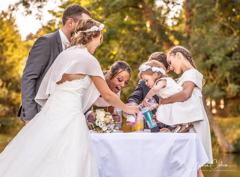 Vous tenez au symbole de l’association de chacun à l’engagement que vous prenez. Prévoyez alors un peu plus de temps pour le déroulement du rituel afin de faire défiler tous vos invités.